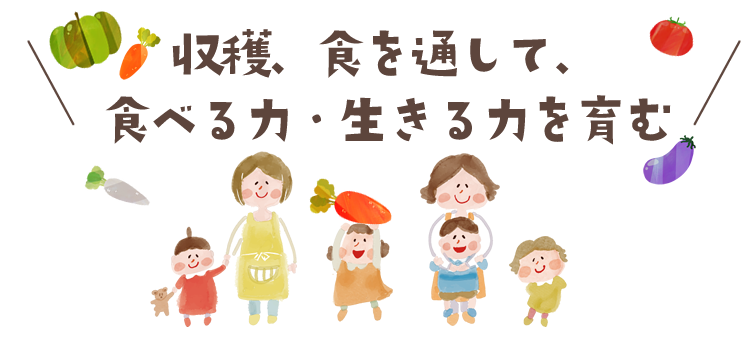 向陽台保育園は、食を営む力を養うということから、食べたい気持ちを大切にしています。栽培や収穫、旬の食材に見て、触れ、年齢に合わせた調理保育などさまざまな経験を通して「食べること」が楽しみとなり、食が心身ともに健康な身体づくりに繋がっていることを感じられるようになることを大切にしています。