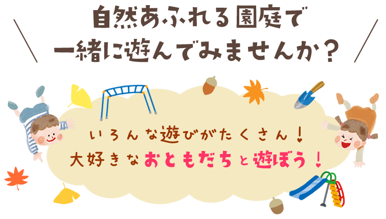 保育園の子どもたちと交流しながら、あそびや行事を楽しみましょう。 育児仲間にも出会える機会です。 当園の保育士、栄養士、看護師による育児の相談も気軽にどうぞ。