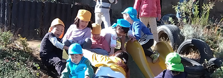 稲城の里山のような自然を生かした園庭で、季節の虫や花を見つけたり、自由に 探索を楽しみましょう。